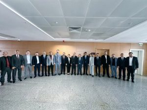 Toplu fotoğraf çekiminden sonra belediye başkanlığı devir teslimi için Belediye Hizmet binasına gelindi.